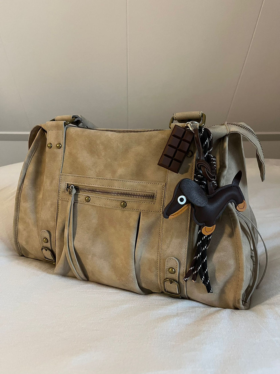Zacht-bruine, ruwe, leder-look handtas (incl losse, verstelbare schouderband).